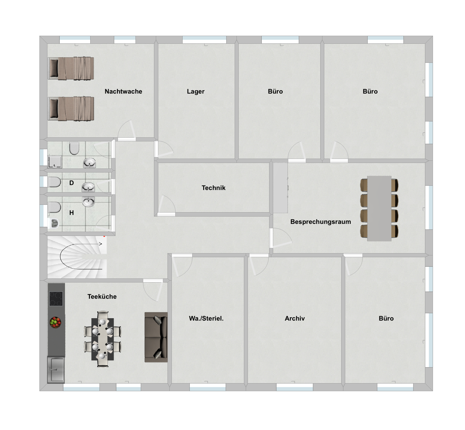 Die Kombination aus modernen Behandlungsräumen, funktionalen Verwaltungs- und Personalbereichen sowie flexibel erweiterbaren Stall- und Außenflächen macht diese Pferdeklinik zu einem idealen Standort für eine professionelle und erfolgreiche Tierarztpraxis – mit einer Entfernung zur Autobahn von nur 3 Fahrminuten.