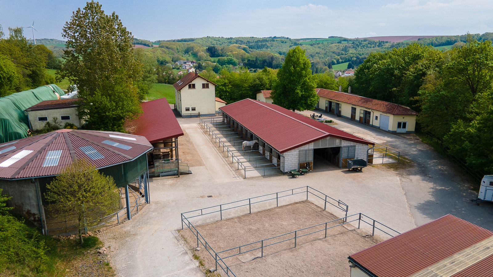 Die Reitanlage befindet sich in einem Ortsteil der Stadt St. Wendel im Saarland und umfasst eine Grundstücksgröße von rund 148.811 m² im Eigentum – vollständig am Hof gelegen. Der Betrieb ist derzeit als Pensionsbetrieb ausgelastet und bietet Pferd und Mensch ideale Trainingsbedingungen und eine pferdegerechte Haltungsform.