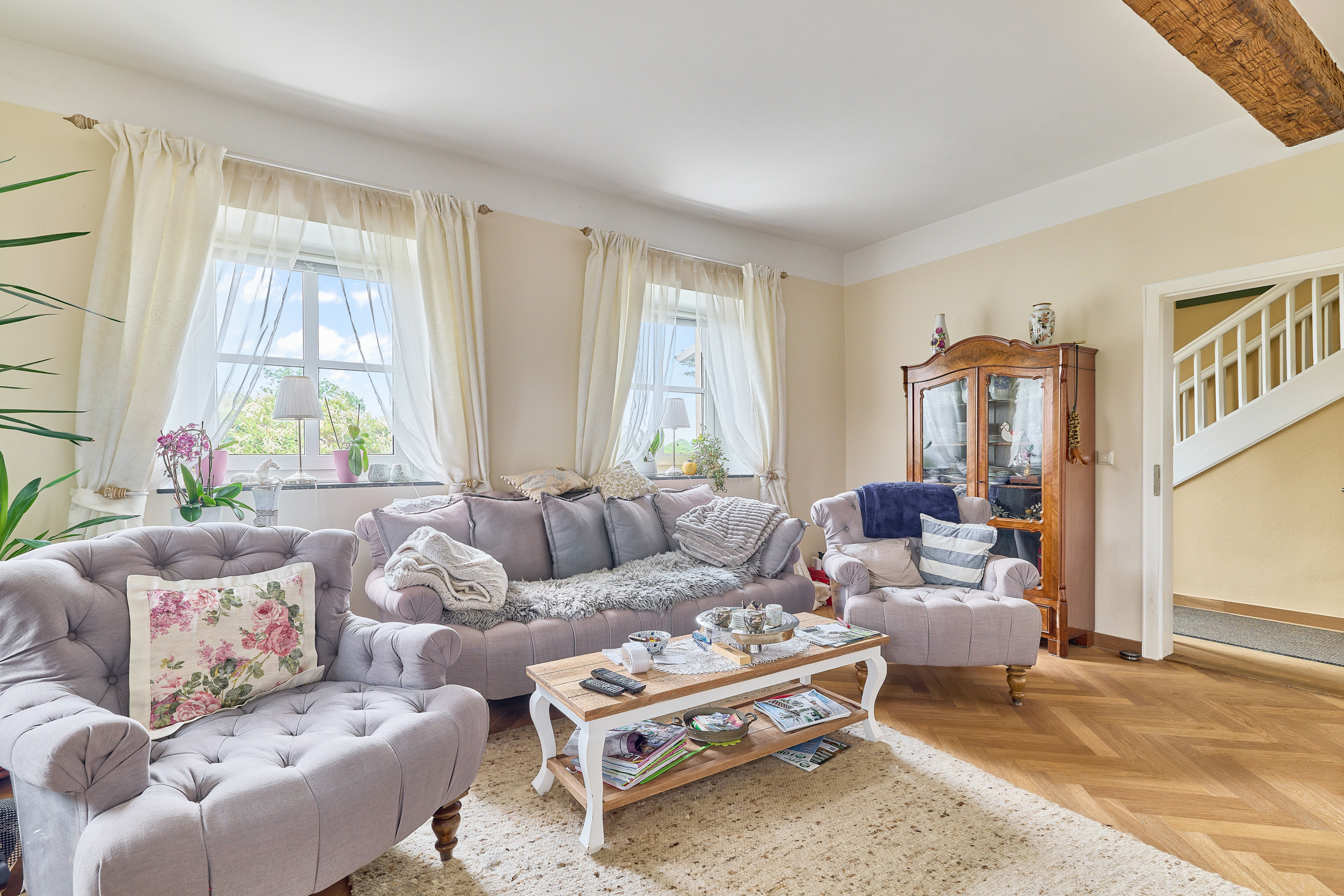 Besonderen Charme verleiht dem Anwesen das historische Haupthaus, das umfassend saniert wurde und bei Bedarf in zwei Wohneinheiten teilbar wäre. Ein teilweise unterkellertes Gewölbe sowie der beeindruckende Kreuzgewölbe-Festsaal, der das Wohnhaus mit dem Stallbereich verbindet, schaffen ein einmaliges Ambiente und eröffnen vielseitige Nutzungsmöglichkeiten.
