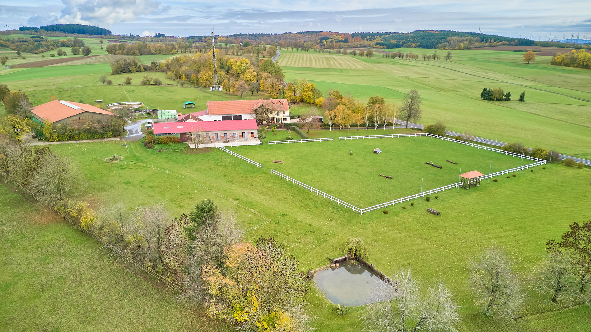 Diese Reitanlage in Hessen liegt in einem Ortsteil von Birstein im Main-Kinzig-Kreis und besticht vor allem durch die exponierte Lage und die Kombination aus groĂzĂŒgigem Wohnkomfort und Trainingsbedingungen fĂŒr den ambitionierten Reitsport.