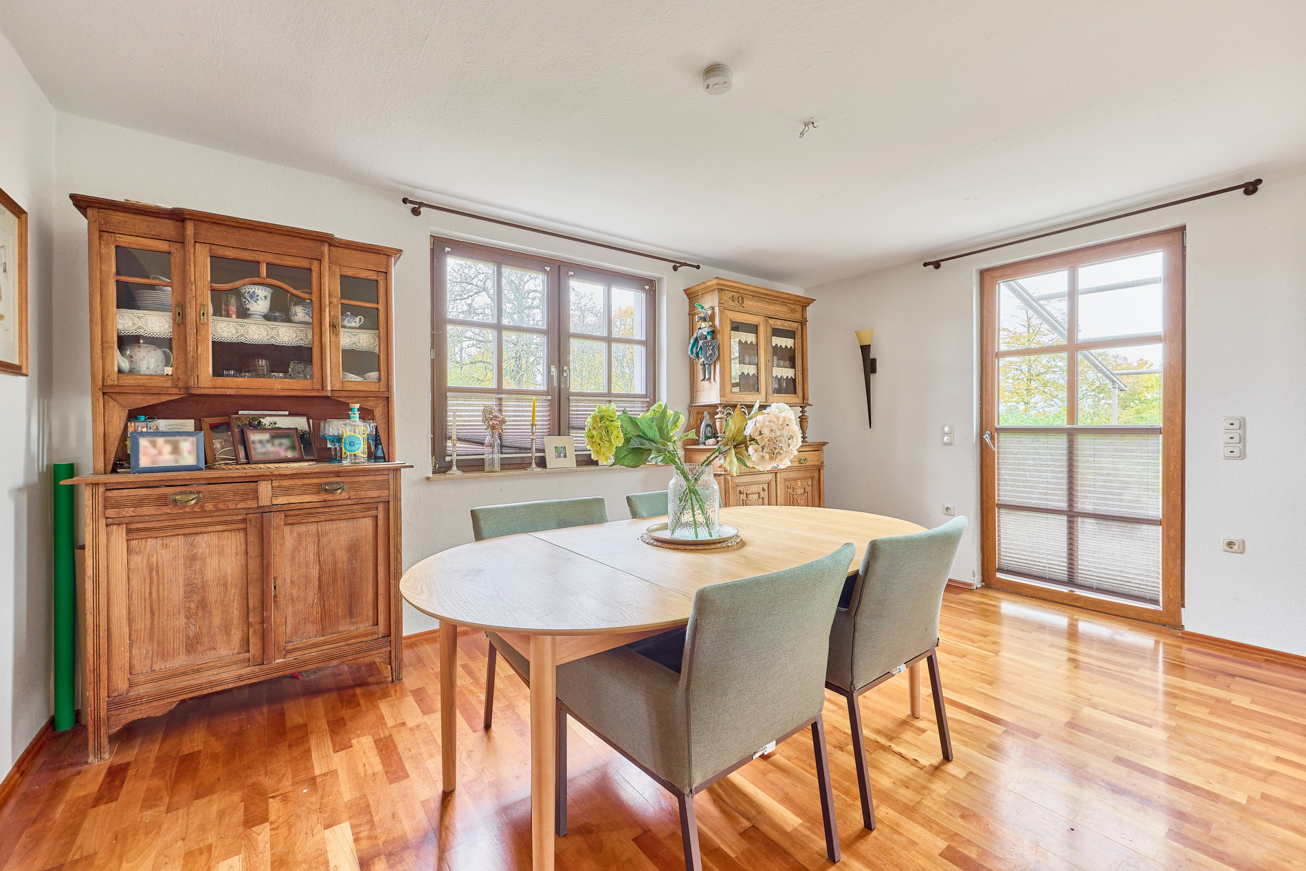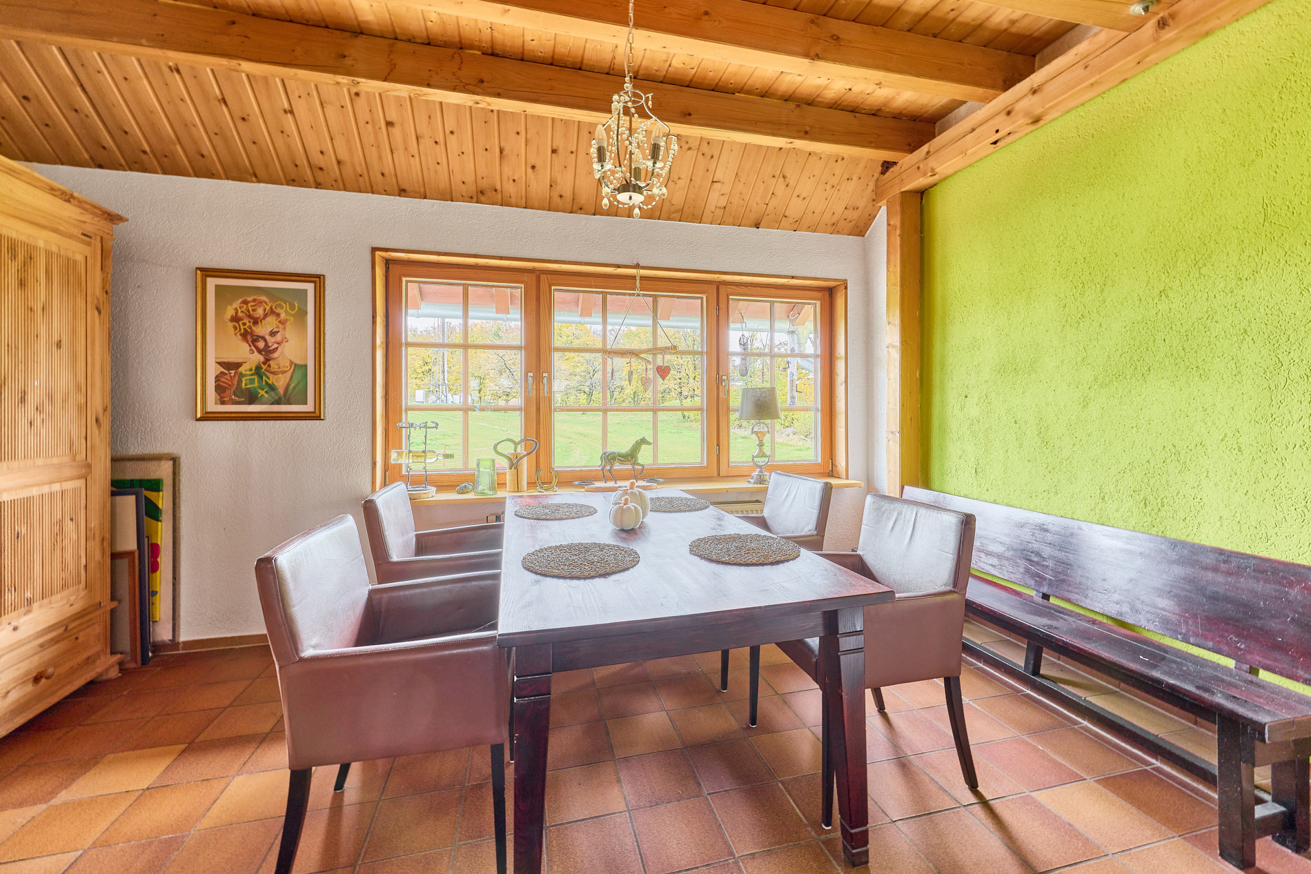 Das Landhaus verfĂŒgt ĂŒber eine WohnflĂ€che von ca. 350 mÂČ, verteilt auf drei Wohneinheiten, darunter eine kleine Personalwohnung und zwei groĂe Wohnungen. Die beiden groĂen Wohneinheiten lassen sich durch eine VerbindungstĂŒr problemlos zu einer Einheit zusammenfassen, sind jedoch bei Bedarf auch weiter trennbar. Das GebĂ€ude wurde regelmĂ€Ăig modernisiert, die BĂ€der und KĂŒchen 2020 erneuert. Ausgestattet ist das Haus mit einer Luft-/WĂ€rmepumpe und einer Ălheizung, sowie FuĂbodenheizung und gemĂŒtlichen Kachelöfen. Ein groĂer Garten mit einem neuwertigen AuĂenpool aus 2021 sorgen fĂŒr eine gewisse ExklusivitĂ€t.