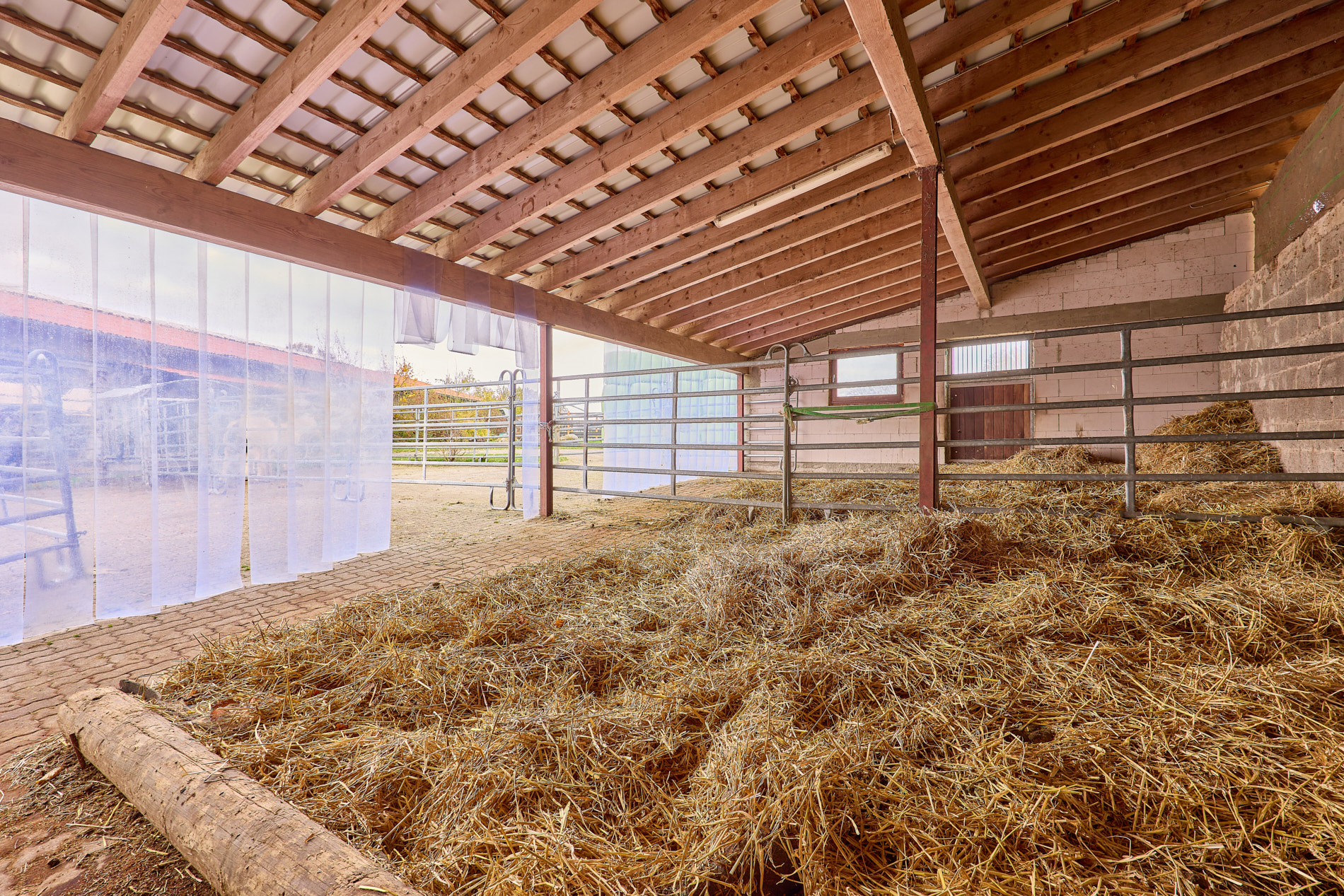 FĂŒr den tĂ€glichen Ablauf stehen zudem eine genehmigte Mistplatte, ausreichend PKW-StellplĂ€tze sowie ein AnhĂ€ngerparkplatz zur VerfĂŒgung. Der Charme des Landhauses, die groĂzĂŒgigen FlĂ€chen und die ruhige Alleinlage machen dieses Anwesen zu einem Ort, an dem man sich sowohl im Alltag als auch im Reitsport sofort zuhause fĂŒhlt.