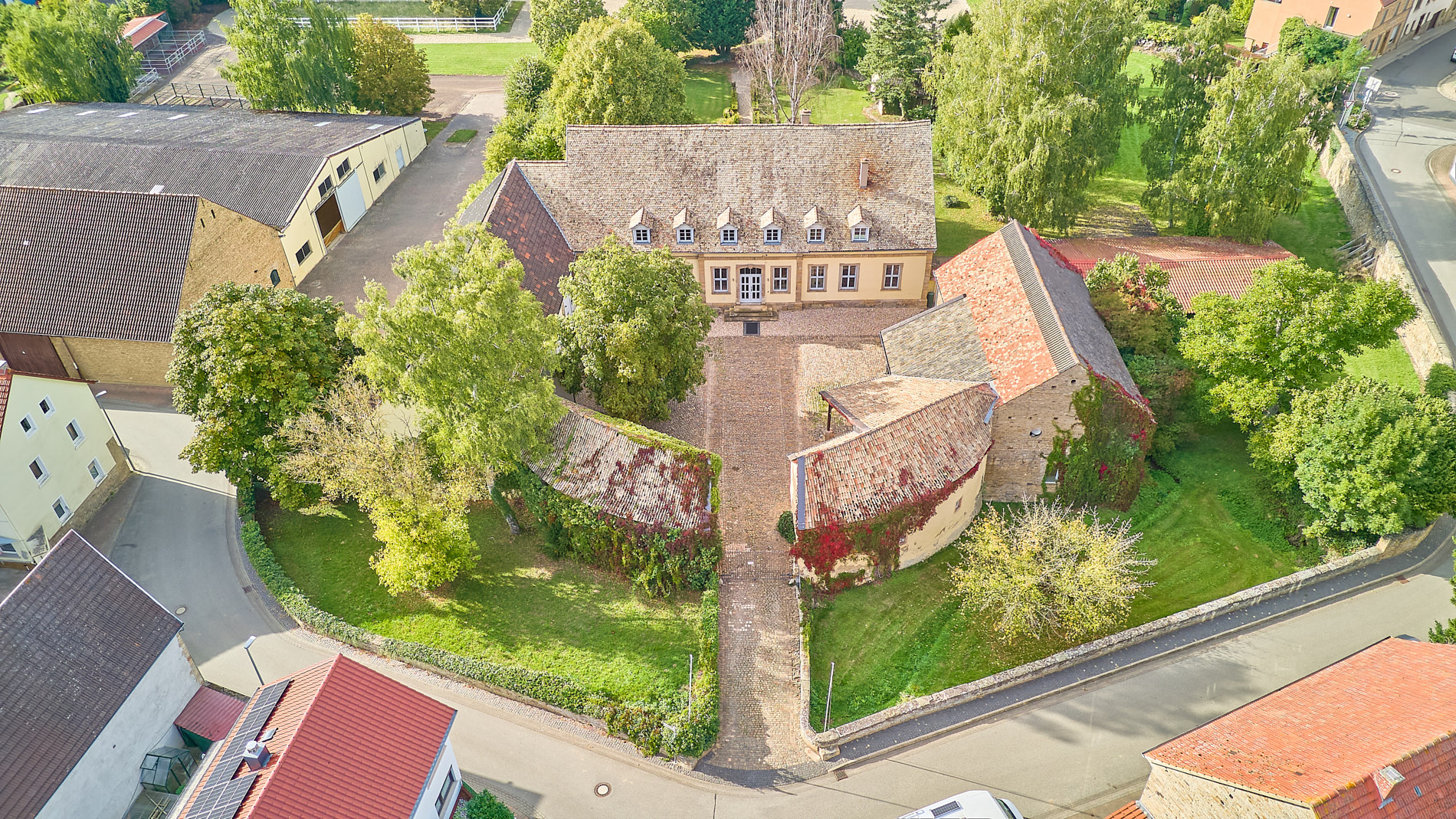 Wohnfläche ca. 760 m² (Schloss + Gästehaus) zzgl. 2.600 m² Nutzfläche