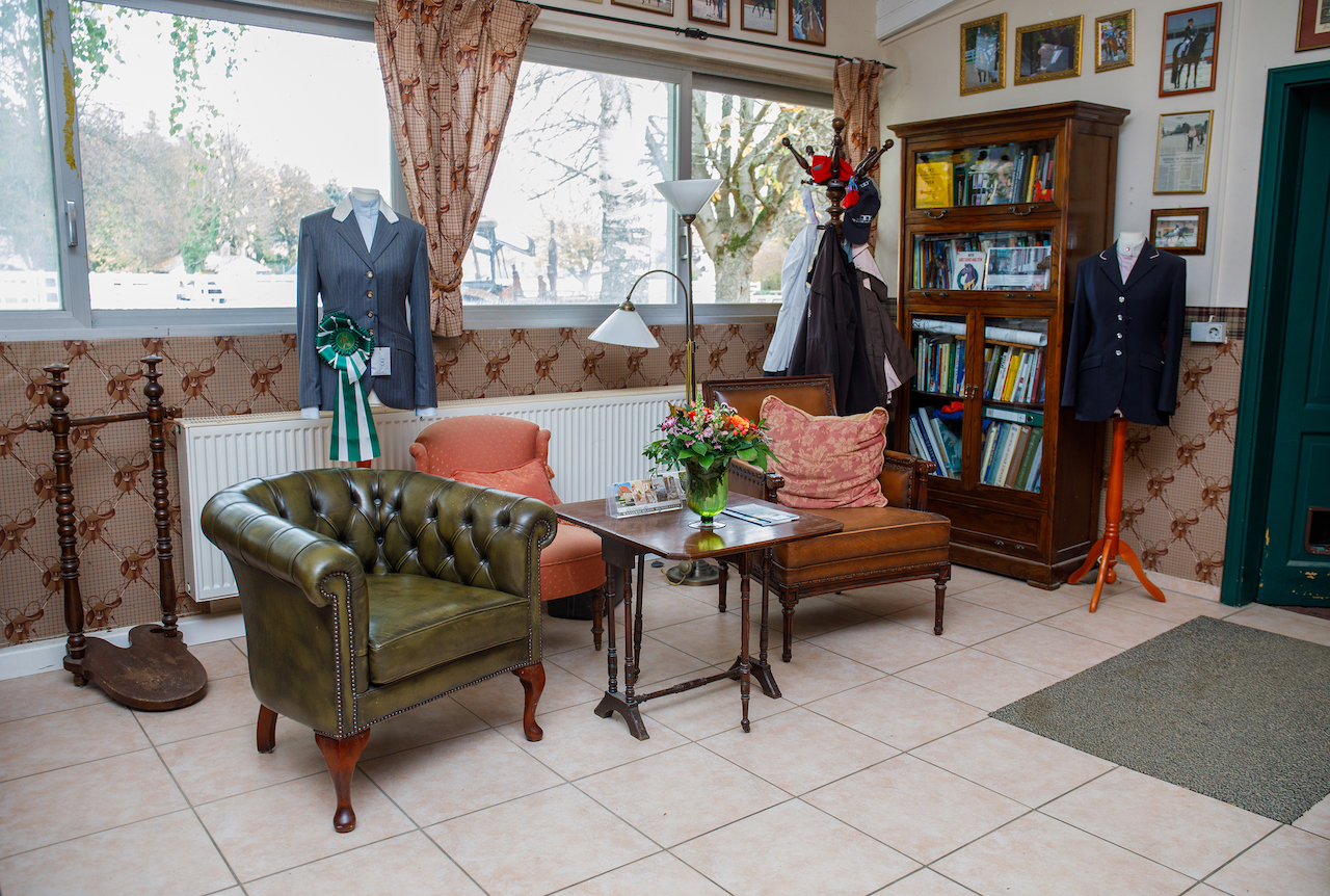 - Reiterstübchen / Casino mit Theke, Blick zur Reithalle, Sattelkammern, WC’s, Deckenwaschraum