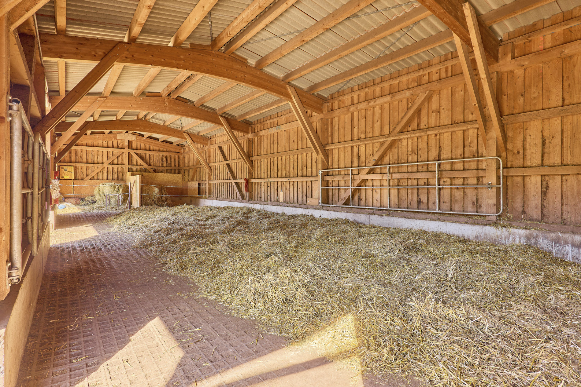 - GroĂzĂŒgige Liegehalle mit angrenzender ĂŒberdachter Mistplatte