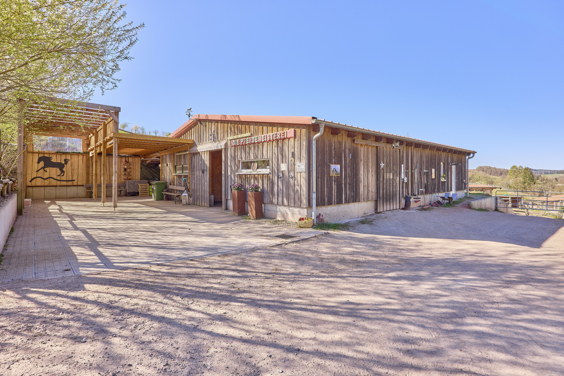 - 4 Paddockboxen, wird derzeit aber als Offenstall genutzt (bietet jedoch eigentlich eine separate Stall-Einheit mit eigener Sattelkammer)