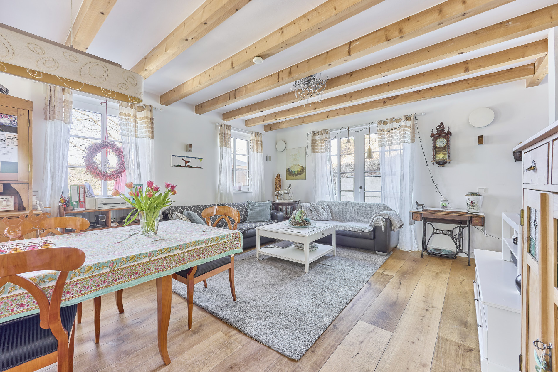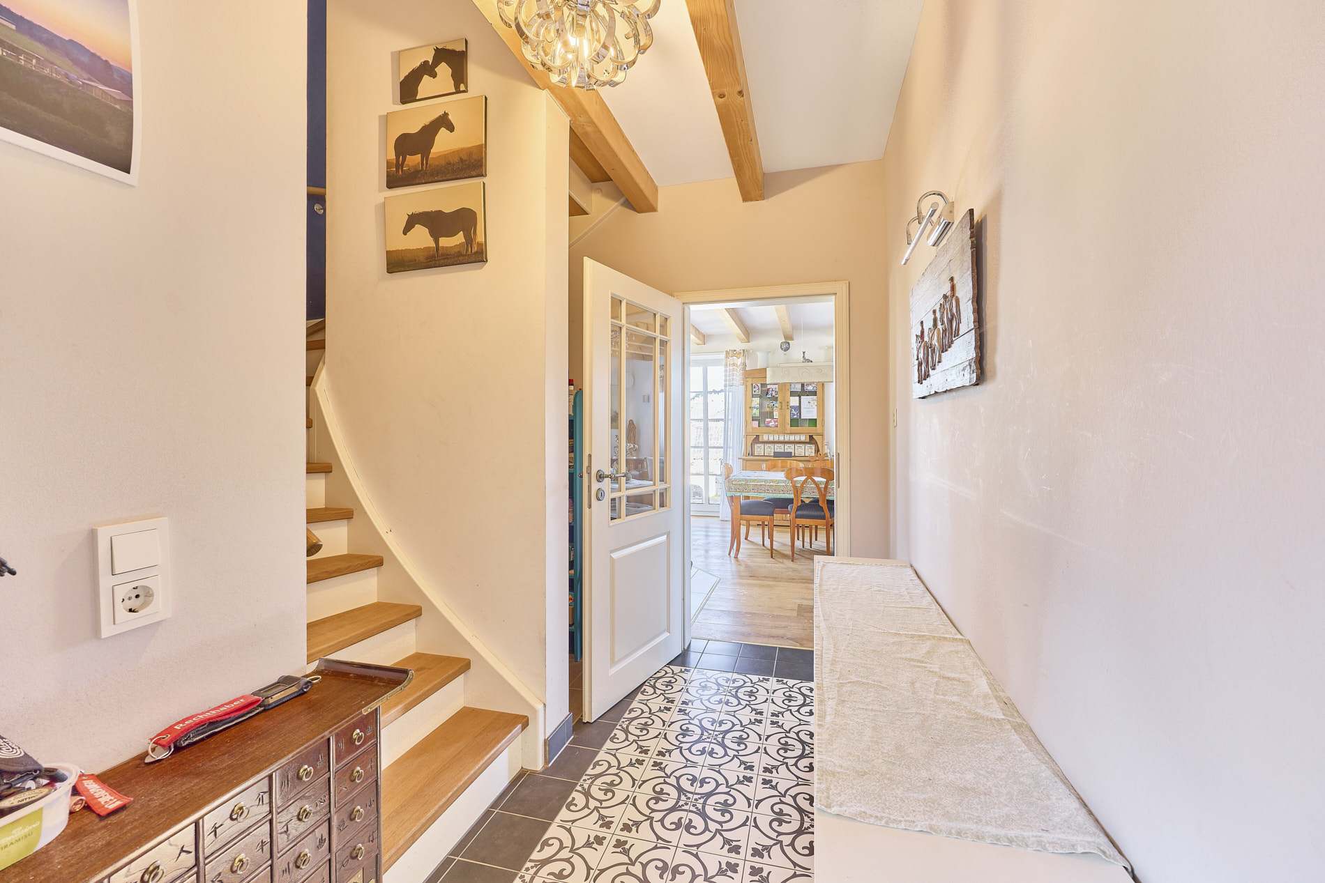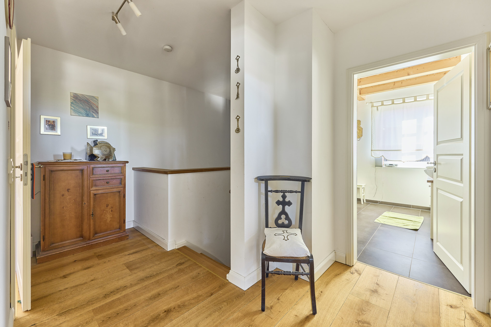 - Boden: Parkett und Fliesen