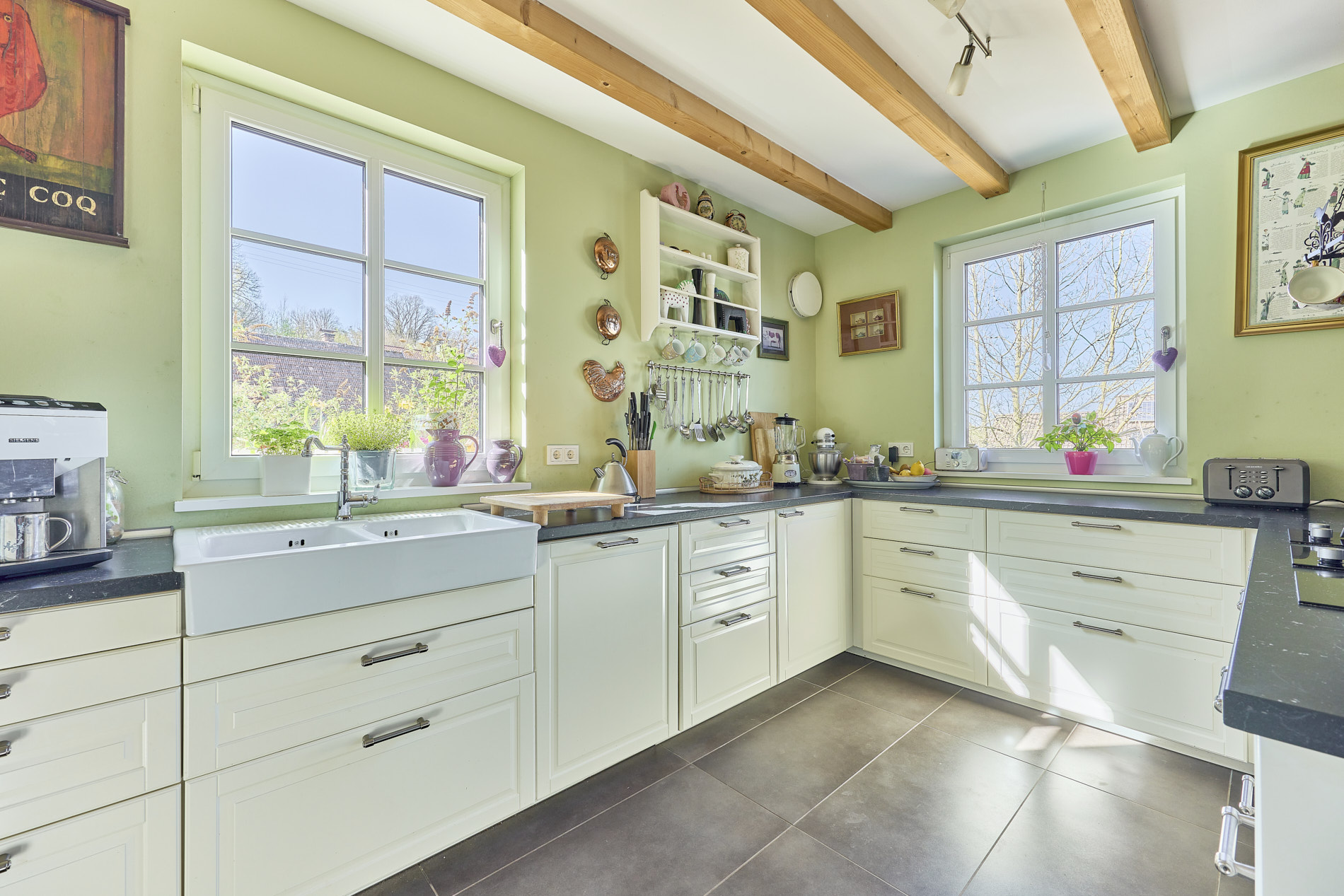 - KĂŒche: LandhauskĂŒche aus 2016, Induktionsherd und Gaskochfeld